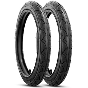 Produto: Conjunto de pneu e tubo interno 16X1,75 Serve para vários modelos de carrinhos de bebê Estes conjuntos de pneus de substituição e tubo interno de carrinho de bebê de 16 x 1,75 m servem para modelos BOB 3 Wheeler Gear Jogging Troller - Carrinho de bebê simples e duplo, compatível com Bob Gear Revolution (PRO/Flex/SE), BOB Gear Ironman e Stroller Strides pneus de carrinho de ginástica. Pneus de 16 x 1,75 também são compatíveis com o mesmo modelo de pneus de bicicleta infantil. As marcas/modelos compatíveis incluem RoyalBaby Kids Bike, Schwinn Koen Boys Bike, Schwinn Elm Girls Bike, Titan Girl's Flower Princess BMX, Dynacraft Magna, Joystar Kids Bikes e muito mais! Características: Pneu: design de padrão de banda de rodagem de bloco e tira para maior aderência Tubo interno: Recurso de autovedação para evitar planos explosivos Material do tubo interno: borracha butílica mais espessa de absorção de jarrete resistente Conteúdo da embalagem: 2 pneus 16 x 1,75, tubos internos 2 x 16 x 1,75/2,125 2 tampas de válvula. - Ampla compatibilidade: Estes conjuntos de pneus de substituição e tubo interno para carrinho de bebê de 16 x 1,75 são adequados para modelos de carrinho de corrida BOB 3 rodas - carrinho de bebê simples e duplo, compatível com Bob Gear Revolution (PRO/Flex/SE), BOB Gear Ironman e Stroller Strides Fitness Carrinho; pneus de 16 x 1,75 também compatíveis com o mesmo modelo de pneus de bicicleta - Aderência aprimorada: os pneus de carrinho de bebê 16x1,75 (47-305) são projetados com padrão de bloco e tira para aumentar sua aderência, tração e drenagem em terrenos escorregadios para melhor proteção para seus passeios; É a escolha mais segura ao andar sobre superfícies molhadas - Seguro e confiável: os tubos de pneu de carrinho de bebê precisam fornecer conforto e segurança; estes tubos de substituição para pneus de carrinho de bebê resistentes são feitos de borracha butílica de alta qualidade e podem fornecer absorção de choque ideal com suas paredes grossas de borracha butílica; seu recurso de autovedação criará imediatamente uma vedação hermética quando o pneu for perfurado para evitar rasgos explosivos - Melhor aperto de ar: estes tubos internos de substituição para carrinhos de bebê resistentes 16 x 1,75/2,125 feitos de borracha butílica, apresentam 45% mais conteúdo de borracha e paredes laterais mais grossas, oferecem excelente vedação e retenção de ar - Conteúdo da embalagem: 2 pneus de 16 x 1,75, 2 tubos internos de 16 x 1,75/2,125, 2 tampas de válvula