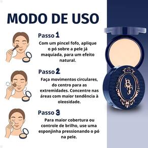 Com um pincel fofo, aplique o pó sobre a pele já maquiada, para um efeito natural. Faça movimentos circulares, do centro para as extremidades. Concentre nas áreas com maior tendência à oleosidade: zona T, abaixo dos olhos e laterais do nariz. Para maior cobertura ou controle de brilho, use uma esponjinha pressionando o pó na pele. Reaplique ao longo do dia sempre que desejar renovar o acabamento da pele.