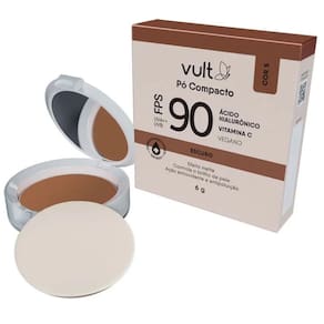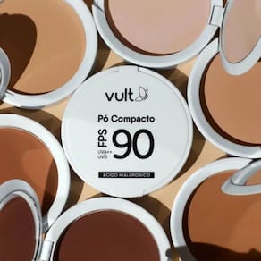 Vult Pó Facial Compacto FPS90 possui proteção solar (UVA++ e UVB) e proteção contra a luz azul, sendo ideal para o uso diário.