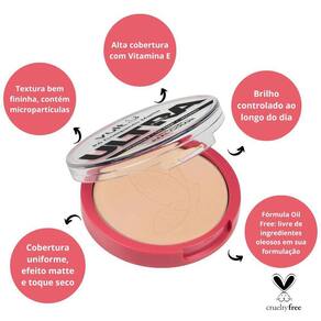 -cobertura média a alta. -efeito natural. -fórmula Oil Free: livre de ingredientes oleosos em sua formulação. -com Vitamina E. -aumenta a durabilidade da maquiagem. -vegano. -livre de parabenos. -brilho controlado ao longo do dia. -dermatologicamente testado.