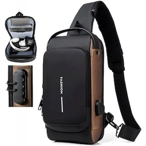 Esta é uma descrição de uma mochila de ombro masculina que possui uma trava à prova d'água antirroubo e um porta de carregamento USB. A mochila é projetada para ser usada como uma bolsa tiracolo, permitindo que o usuário carregue seus pertences de forma segura e conveniente.