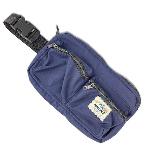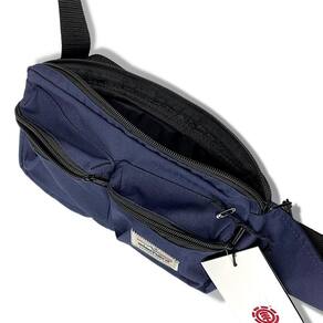Pochete Element com compartimento interno em zíper e bolsos frontais, com alça ajustável removível e etiquetas personalizadas.