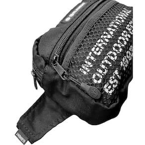 Pochete Element com compartimento interno em zíper e bolso frontal em mesh, com alça ajustável e removível e etiquetas personalizadas.