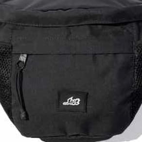 Pochete Lost grande com compartimento frontal com fechamento em zíper, redinha nas laterais, alça ajustável e personalizada e etiquetas personalizadas.