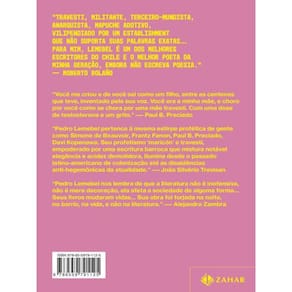 Antologia definitiva de um dos escritores e ativistas queer mais criativos e radicais do século XX. Símbolo da resistência à ditadura militar e da dissidência sexual no Chile, Pedro Lemebel usou a vida e a escrita para confrontar e afrontar o poder instituído — a tirania de Augusto Pinochet, o beletrismo, os bons costumes, o capitalismo —, tornando-se uma voz fundamental da contracultura latino-americana a partir dos anos 1980. Reivindicando a transgressão como forma de potência, seus escritos conseguiram tornar visíveis as desigualdades e a marginalização de pobres, mulheres e homossexuais durante o regime militar e a incipiente democracia chilena. É na margem, na favela, na esquina da noite escura que está a verdadeira subversão. Organizada pelo crítico espanhol Ignacio Echevarría, Poco hombre reúne as melhores crônicas da produção de Lemebel ao longo de mais de duas décadas e é a porta de entrada perfeita para se conhecer um artista genial e único. “Travesti, militante, terceiro-mundista, anarquista, mapuche adotivo, vilipendiado por um establishment que não suporta suas palavras exatas... Para mim, Lemebel é um dos melhores escritores do Chile e o melhor poeta da minha geração, embora não escreva poesia.” — Roberto Bolaño “Você me criou e de você saí como um filho, entre as centenas que teve, inventado pela sua voz. Você era a minha mãe, e choro por você como se chora uma mãe travesti. Com uma dose de testosterona e um grito.” — Paul B. Preciado “Pedro Lemebel pertence à mesma estirpe profética de gente como Simone de Beauvoir, Franz Fanon, Paul B. Preciado, Davi Kopenawa. Seu profetismo ‘maricón’ e travesti, empoderado por uma escritura barroca que mistura notável elegância e acidez demolidora, ilumina desde o passado latino-americano de colonização até as dissidências anti-hegemônicas da atualidade.” — João Silvério Trevisan “Pedro Lemebel nos lembra de que a literatura não é inofensiva, não é mera decoração, ela afeta a sociedade de alguma forma... Seus livros mudaram vidas... Sua obra foi forjada na noite, no barrio, na vida, e não na literatura.” — Alejandro Zambra