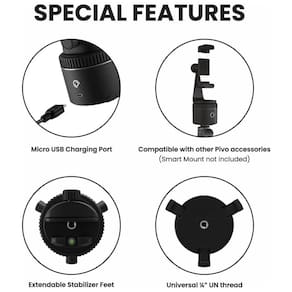 CRIE EM MOVIMENTO Grave a qualquer hora, em qualquer lugar, com pés estabilizadores extensíveis e compatibilidade com suportes de câmera padrão de . Emparelhe com os acessórios Pivo para maior versatilidade