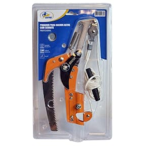 Podador cortador de galhos altos com serrote profissional guepar- marca: guepar- referência: 861-49389- ideal para cortar e podar galhos altos de maneira prática e eficaz.- cordão de acionamento: 2,5m- corte 45- capacidade de corte: 30mm- não acompanha o cabo- com o serrote é possível efetuar a poda de galhos de diâmetros maiores, facilmente, garantindo um corte limpo e sem rebarbas- para galhos menores, ainda é possível utilizar o podador, garantindo agilidade durante a tarefa- você pode acoplar esta ferramenta em cabos extensores e, assim, cortar galhos em locais de difícil acesso- lâmina em aço carbono flexível e de alta durabilidade- elevado grau de afiação dos dentes: confere precisão de corte e dispensa retoques periódicos- podador de galhos altos com serrote- tesoura conjugada, prática e eficiente- peso bruto: 900 gramas- garantia: 90 dias
