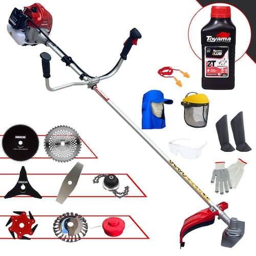 Roçadeira À Gasolina Kawashima BCJ 620L 62CC 3HP 2T + Faca 3 Pontas Duraline + Faca 40 Dentes Duraline + Faca 80 Dentes Duraline + Faca 6 Pontas + Escova Rotativa 24 cerdas + Trimmer + Óleo Toyama FG50 500ml + Kit EPI Completo