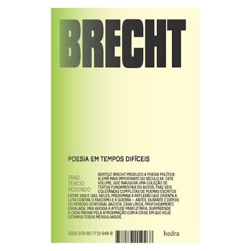 Bertolt Brecht produziu a poesia política alemã mais importante do século XX. Este volume, que inaugura uma coleção de textos fundamentais do autor, reúne seis coletâneas completas de poemas escritos entre 1926 e 1953. Neles, predomina a reflexão que orienta a luta contra o fascismo e a guerra — antes, durante e depois do período ditatorial nazista. Essa lírica, profundamente engajada, mas avessa à atitude panfletária, surpreende pela atualidade e pela proximidade com a crise em que ainda estamos mergulhados.