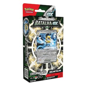O Deck Pokémon TCG – Melmetal ex é a escolha perfeita para jogadores que querem dominar o jogo com força bruta e estratégia! Este deck completo traz 60 cartas oficiais, liderado por Melmetal ex e acompanhado de aliados como Meltan, Revavroom, Orthworm e Zacian, formando um time poderoso e versátil.