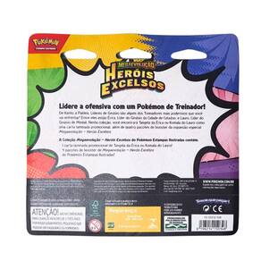 De Kanto a Paldea, Líderes de Ginásio são alguns dos Treinadores mais poderosos que você vai enfrentar! Entre eles estão Erika, Líder do Ginásio da Cidade de Celadon, e Lauro, Líder do Ginásio de Medali. Nesta coleção, você encontrará Tangela da Érica ou Komala do Lauro como uma carta laminada promocional, além de quatro pacotes de booster da expansão especial Megaevolução – Heróis Excelsos.