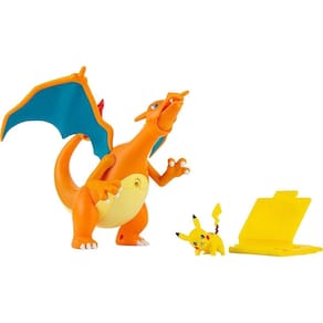 Pokemon Figura Charizard Chama E Voo Com Pikachu - Sunny 3296 O Pokémon mais feroz e memorável não pode faltar em sua coleção. Charizard de 18cm e o Pikachu de 4cm com acabamento primoroso. Para fãs que querem todos os dias posições diferentes em sua decoração ou para quem ama brincar com as criaturas mais famosas do mundo. Charizard reage de maneira diferente a voar, girar e muitas outras combinações de vôo cheio de ação. Carregue um dos três projéteis de chama incluídos e Charizard pode realizar um poderoso ataque de fogo. Treine e lute com o Pikachu incluído e o acessório lançador de figuras.