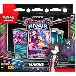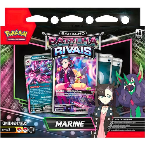 É hora de pegar pesado! A Habilidade Virar Punk do Grimmsnarl ex da Marine acelera até cinco Energias diretamente do seu baralho para os seus Pokémon, permitindo que você ataque imediatamente com Projétil Sombrio, ao mesmo tempo que fortalece seus atacantes no Banco. Contém 60 unidades de cartas no formato 63mm x 88mm.