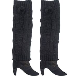 Polainas Adulto Lã Feminina Malha Tricô Moda Inverno Preto -