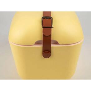 Uma das características que se destaca nesse produto é a alça em couro, que além de oferecer uma aparência retrô, proporciona mais conforto na hora de transportar a bolsa. As alças são extremamente resistentes e possuem reguladores de altura, facilitando o transporte. Você pode carregar no ombro, no braço ou segurando na tampa. A alça tem um tom marrom que combina perfeitamente com os tons pastéis do cooler, basta escolher a cor que mais combina com seu estilo e aproveitar.