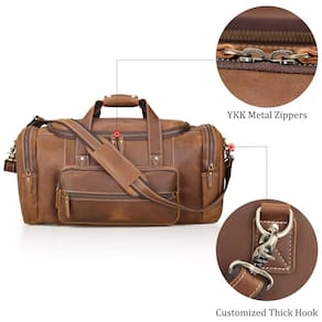 Couro 100 de couro de grão integral e zíperes de metal YKK Usamos couro americano autêntico que ganha personalidade à medida que envelhece e zíperes YKK premium para garantir qualidade e confiabilidade. Nossa Weekender Travel Duffel foi feita para enfrentar tudo o que você oferecer ao longo dos anos. Grande capacidade Dimensões 58 25 . Peso do item 2,7 kg. Fácil de transportar suas necessidades, ótimo para viagens de fim de semana, férias ou uma viagem de negócios. Bolsa de zenamento aprimorada Há um bolso frontal e dois bolsos laterais na bolsa, pode segurar perfeitamente uma garrafa de água e um guarda chuva para uso diário. Mantenha suas opções abertas Encontre a empunhadura certa para qualquer situação com nossas alças de transporte resistentes e alça de ombro destacável. Esteja você usando a com o corpo cruzado em uma motocicleta ou por cima do ombro com um terno, a alça com fivela ajustável torna nossa mochila de viagem Ambassador confortável para levar com você Marca: Não Informado