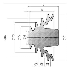 Polia de Aluminío Escalonada para Transmição 4 Canais de 65mm à 140mm - Alucal PAE65-140A1