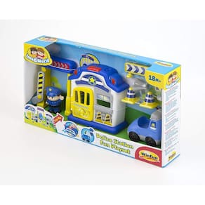 Inclui posto de polícia com porta móvel, policial, ladrão faz de conta , cão policial, carro de policial, prisão faz de conta , sinais e cones