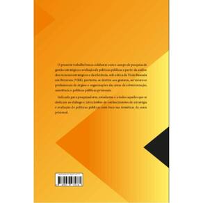 O presente trabalho busca colaborar com o campo de pesquisa de gestão estratégica e avaliação de políticas públicas a partir da análise dos recursos estratégicos e da eficiência, sob a ótica da Visão Baseada em Recursos (VBR), portanto, se destina aos gestores, servidores e profissionais de órgãos e organizações das áreas de administração, assistência e políticas públicas prisionais. Indicado para pesquisadores, estudantes e a todos aqueles que se dedicam ao diálogo e intercâmbio de conhecimentos de estratégia e avaliação de políticas públicas com foco nas temáticas da seara prisional.