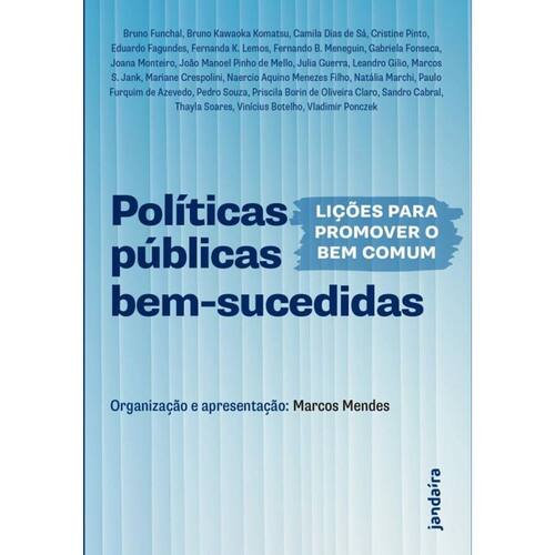 Nesta obra organizada pelo economista e pesquisador do Insper Marcos Mendes é possível conhecer casos concretos de políticas públicas bem-sucedidas para mostrar a viabilidade delas se forem colocadas em prática através de muito esforço, organização e disciplina. A obra reúne onze artigos de diferentes especialistas que tratam de assuntos como a efetividade do uso de câmeras corporais pelas polícias brasileiras, controle de prevenção do desmatamento na Amazônia, o sucesso do Pix no Brasil e ações na área da economia que foram transformadoras.