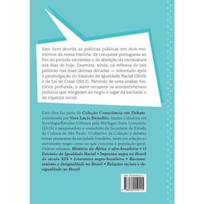 Este livro aborda as políticas públicas em dois momentos da nossa história: da conquista portuguesa ao fim do período escravista e da abolição da escravatura aos dias de hoje. Examina, ainda, os reflexos de tais políticas nas duas últimas décadas — sobretudo após a promulgação do Estatuto da Igualdade Racial (2010) e da Lei de Cotas (2012). Partindo de uma análise histórica profunda, o autor recupera os acontecimentos políticos que relegaram ao negro o lugar da exclusão e da injustiça social. O objetivo da Coleção Consciência em Debate é debater temas prementes da sociedade brasileira, tanto em relação ao movimento negro como no que concerne à população geral. Marca: Não Informado