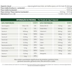 Vitamina A: Auxilia no sistema imunológico e é ótimo para saúde dos olhos;Vitamina C: é antioxidante, auxilia contra envelhecimento, alivia o estresse;Vitamina D: Essencial na saúde óssea, auxilia na saúde do coração;Vitamina E: Ajuda no crescimento dos cabelos, previne o câncer de próstata, é antioxidante;Vitamina K: Ajuda na coagulação sanguínea, mantém a função renal e previne câncer;Cálcio: Fundamental para os ossos e os dentes;Cromo: Controla fome e glicemia;Cobre: Importante para saúde da pele e cérebro;Iodo: Essencial para o crescimento e metabolismo;Manganês: Para epiléticos ajuda a diminuir convulsões, ajuda no controle da tireoide;Selênio: Combate aos Radicais Livres;