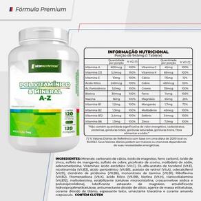 O Multivitamínico De A-Z 120 Tabletes New Nutrition é o suplemento ideal para garantir uma ingestão adequada de vitaminas e minerais essenciais. Composto por 13 vitaminas e 9 minerais, ele fornece 100% da dose diária recomendada desses nutrientes, proporcionando praticidade na suplementação e melhorando a saúde e o bem-estar. Benefícios: fornecimento de nutrientes, reposição de nutrientes, praticidade. Sugestão de uso: 1 tablete ao dia. Ingredientes: minerais e vitaminas. Marca: New Nutrition.