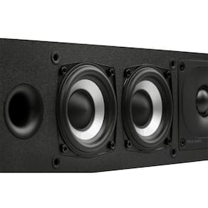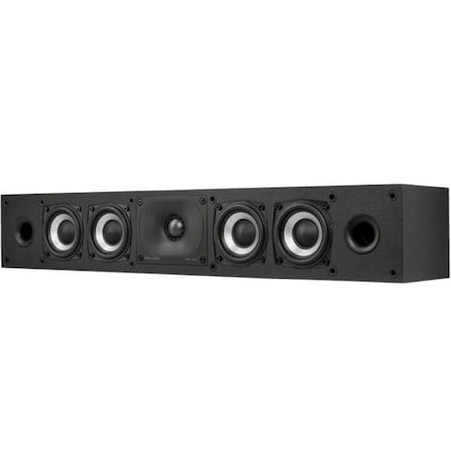 - Complemento do driver da matriz frontal: (1) 1 "(2,54 cm) Tweeter de cúpula de terileno; (4) 3" (7,62 cm) Woofers de papel bilaminado - Tipo de invólucro: Duas portas frontais - Resposta de frequência total: 57 Hz - 40.000 Hz - Limites inferior e superior de -3dB: 84 Hz - 26.000 Hz - Sensibilidade (1 watt @ 1 metro): 87dB SPL - Potência de amplificador recomendada por canal: 25 watts - 200 watts - Frequência de crossover do Tweeter/Médios: 2500Hz - Entradas: Postes de ligação 5 vias banhados a níquel - Tipo de montagem: 1/4 "20 inserto roscado ou gancho de fechadura - Peso: 6,4 Kg - Dimensões: 10,6 x 62 x 14,1 cm (AxLxP)