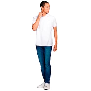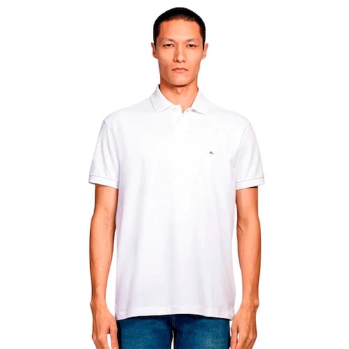A polo é confeccionada em malha piquet de algodão com modelagem reta. A peça possui gola colarinho com abotoamento, logo da marca bordado na altura do peito do lado esquerdo e mangas curtas.