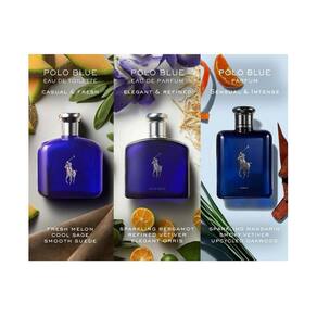 Ralph Lauren Polo Blue Parfum apresenta um acorde de madeiras frescas que combina com mandarim cintilante, sálvia e vetiver esfumaçado. O resultado é uma fragrância envolvente e sedutora que adiciona uma nova intensidade de rica sensualidade à icônica coleção de fragrâncias.
