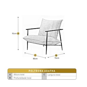 A poltrona Agatha conta com o encosto de almofada solta, preenchida 100% com fibra siliconada. O assento é preenchido com espuma D28 Soft e molas pockets, o que proporciona maior conforto.