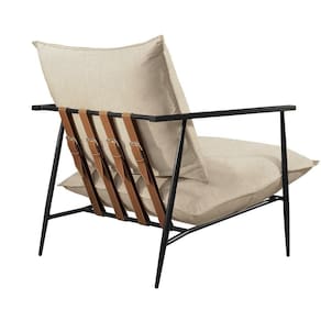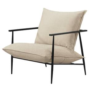 Poltrona Agatha Luxo Metal Industrial Castellar Móbile Linho Bege Claro - Preto