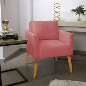 Que tal adicionar um pouco de cor ao seu ambiente? Temos essa linda Poltrona Aline no tom Rosê, ela é um item indispensável na elaboração de uma boa decoração. Perfeita para relaxar, não importa onde for colocada, fica linda no hall de entrada, em volta de uma mesinha de centro na sala de estar, como apoio no quarto ou acomodação extra em escritório. Sem dúvida, ela irá transformar seu espaço em um lugar super harmonioso e moderno. Sua estrutura é confeccionada em madeira de eucalipto proveniente de reflorestamento, o estofamento do assento/encosto é composto de espuma prorelax D-23, revestido em Suede, um tecido aconchegante, resistente e extremamente luxuoso. Sua sustentação é dada pelos tradicionais pés palito castanho. E para complementar ainda mais esta peça, contém uma almofada do mesmo tom do tecido da poltrona, agregando um toque charmoso e lindo à mobília. Curtiu a nossa poltrona? Aqui você encontra uma variedade de cores, para renovar seu cômodo gastando pouco. Garanta já sua Poltrona Aline!