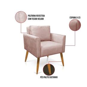 Que tal adicionar um pouco de cor ao seu ambiente? Temos essa linda Poltrona Aline no tom Rosê, ela é um item indispensável na elaboração de uma boa decoração. Perfeita para relaxar, não importa onde for colocada, fica linda no hall de entrada, em volta de uma mesinha de centro na sala de estar, como apoio no quarto ou acomodação extra em escritório. Sem dúvida, ela irá transformar seu espaço em um lugar super harmonioso e moderno. Sua estrutura é confeccionada em madeira de eucalipto proveniente de reflorestamento, o estofamento do assento/encosto é composto de espuma prorelax D-23, revestido em Veludo, um tecido aconchegante, resistente e extremamente luxuoso. Sua sustentação é dada pelos tradicionais pés palito castanho. E para complementar ainda mais esta peça, contém uma almofada do mesmo tom do tecido da poltrona, agregando um toque charmoso e lindo à mobília. Curtiu a nossa poltrona? Aqui você encontra uma variedade de cores, para renovar seu cômodo gastando pouco. Garanta já sua Poltrona Aline!