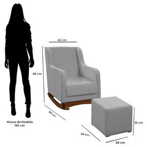 Poltrona Amamentação Aquila Plus com Puff Veludo Cinza - Fratello