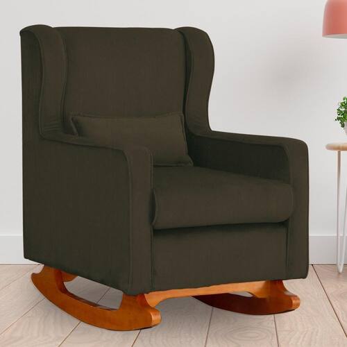 Poltrona Amamentação Balanço Aurora Suede Marrom - LM DECOR