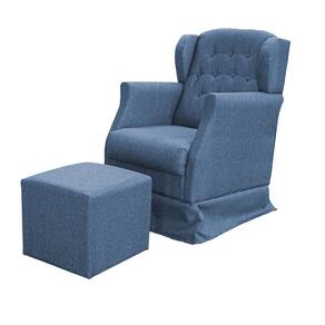 Poltrona Amamentação Balanço Descanso Manu Com Puff Linho - Azul