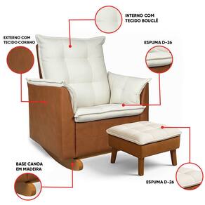 Prepare-se para viver momentos únicos de aconchego e conexão com o seu bebê. A Poltrona de Amamentação Lariane em Sintético Nozes com Bouclê foi criada para ser o seu verdadeiro refúgio de tranquilidade. Com design moderno e linhas orgânicas, ela se integra com elegância a qualquer ambiente. O estofamento em espuma de alta densidade D-26, aliado ao encosto alto e apoios laterais, oferece o suporte ideal para uma amamentação confortável e segura. Sua estrutura em madeira de eucalipto reflorestado garante resistência e longa durabilidade, suportando até 120 kg com total confiança. Um diferencial encantador é o sistema de balanço tipo canoa em madeira, que proporciona um movimento suave e contínuo, perfeito para acalmar mãe e bebê. Para completar a experiência, o puff com pés palito garante descanso extra para pernas e pés, ampliando o bem-estar nos momentos mais especiais da maternidade.