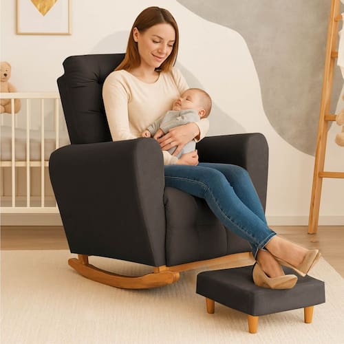 A Poltrona de Balanço são feitas com materiais de alta qualidade, estrutura em madeira de eucalipto, o tecido Suede macio e resistente, e a espuma D26 a densidade ideal para o seu conforto, base em madeira com um lindo design e balanço suave, que ajuda a relaxar e a embalar o sono do seu bebê. Além disso, A Poltrona possui um design moderno e sofisticado, com detalhes No encosto, que dão um toque de charme e elegância ao ambiente.