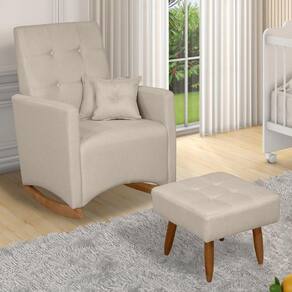 Com estrutura em madeira de eucalipto, oferece resistência e durabilidade no uso diário. A espuma D-23 combinada com o tecido linho da Poltrona proporciona um toque macio e agradável, excelente para longas períodos de amamentação. Seus pés de madeira contam com suporte estável e acabamento sofisticado, enquanto o mecanismo de balanço suaviza os movimentos, sendo perfeito para ninar o neném, promovendo relaxamento e bem-estar. O assento e o encosto são sustentados por percintas elásticas, garantindo firmeza e apoio adequados. O Puff incluso é ótimo para descansar os pés e aumentar ainda mais o conforto. Perfeita para quem busca praticidade e estilo, essa Poltrona de Amamentação se adapta facilmente a qualquer ambiente, seja no Quarto de bebê, na Sala de Estar ou em outros espaços, trazendo elegância e aconchego.