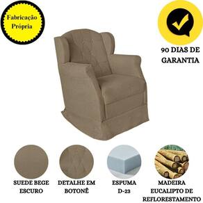 Conforto Extra: A poltrona é acolchoada com espuma D-23 de alta densidade, proporcionando o máximo de conforto para você e seu bebê. Balanço Suave: Desfrute de um suave movimento de balanço que acalma e relaxa, ajudando seu bebê a pegar no sono na hora da amamentação. Design Moderno: Com seu design elegante, a Poltrona Amamentação com Balanço e Puff Luxo Suede Manuela complementará perfeitamente qualquer estilo de decoração do ambiente. Qualidade Duradoura: Feita com tecido suede resistente e madeira de eucalipto de reflorestamento, esta poltrona é construída para resistir ao uso diário e durar por muitos anos. Prepare-se para momentos especiais de conexão com seu bebê! Aproveite a comodidade de ter tudo o que precisa ao seu alcance durante a amamentação. Com a Poltrona Amamentação com Balanço e Puff Luxo Suede Manuela, você terá um lugar confortável para relaxar e nutrir seu bebê com todo o amor que ele merece. Garanta a sua Poltrona Amamentação com Balanço e Puff Luxo Suede Manuela hoje mesmo! Não perca tempo e peça agora mesmo o seu assento especial para momentos inesquecíveis de amamentação e carinho. - Poltrona de amamentação - Cadeira de amamentação - Poltrona de alimentação do bebê - Cadeira de alimentação para lactantes - Poltrona de descanso para amamentação - Cadeira de amamentar confortável - Poltrona de balanço para amamentar - Cadeira de amamentação com apoio para os braços - Cadeira de amamentar com apoio para os pés - Cadeira de amamentação com assento acolchoado - Poltrona de amamentação com função de balanço - Cadeira de amamentação com apoio para cabeça - Cadeira de amamentar com tecido lavável