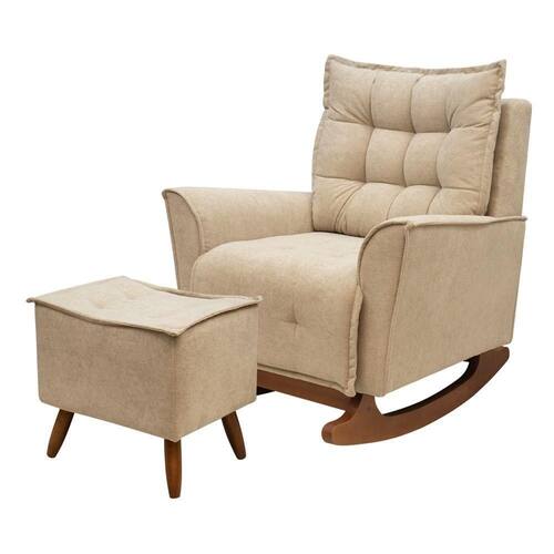 Poltrona Amamentação De Balanço Helena + Puff Boucle Quarto Areia - Bege