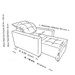 Medidas Altura Total Com Encosto DE Pe = 109 cm Altura Total Fechada= 82 cm Altura do Encosto = 62 cm Altura do Assento = 46 cm Comprimento Total Frente = 82 cm Comprimento Assento = 52 cm Profundidade Fechada = 101 cm Profundidade Aberto = 146 cm