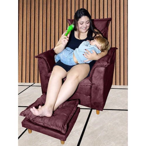 Conforto para a mamãe: Nossa poltrona foi projetada para proporcionar conforto à mamãe enquanto amamenta. Com assentos macios, encosto e apoios para os braços, permitindo que a mãe se acomode de maneira confortável durante as sessões de amamentação prolongadas.