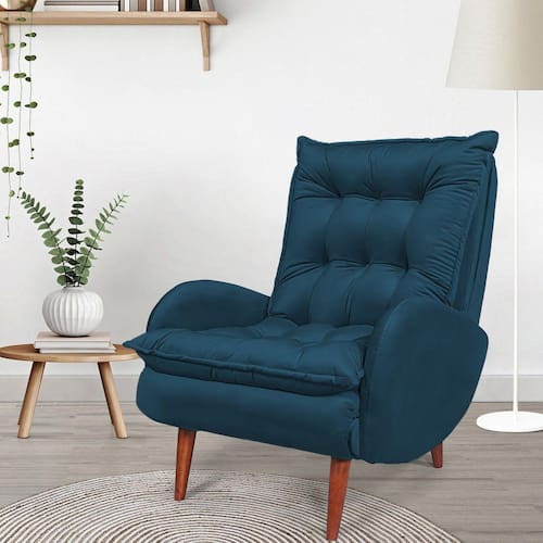 A Poltrona Anatômica Eloá é robusta, elegante e muito confortável, excelente opção para transformar a decoração de seu lar ou escritório, pode ser utilizada em vários cômodos e ser aproveitada para leitura, amamentação e descanso. Ela tem um design diferenciado, foi projetada com objetivo de se moldar ao corpo, proporcionando muito conforto e elegância. Ela é feita com espuma certificada e persinta de alta resistência, apresenta muita qualidade, segurança e excelente acabamento. Outro diferencial é o Pilow com fibra siliconada, garantindo um acabamento com grande maciez. Sua estrutura é composta por madeira de eucalipto e pés de madeira em pínus. A Poltrona Eloá é uma ótima aquisição que deixará seu ambiente com uma aparência ainda mais respeitável, além de garantir maior conforto. Acompanha Almofadas extras: Não Acompanha Puff: Não Almofada do assento: Fixa Almofada do encosto: Fixa Altura do assento até o chão: 49 cm Altura do Encosto: 61 cm Altura dos Pés: 25 cm Ambiente Principal: Sala de Estar Complexidade da Montagem: Baixa: pode ser montado por uma pessoa sozinha Cor: Marinho Cor do Produto: Marinho Design Assinado: Não Enchimento do Assento: Fibra Siliconada Enchimento do Braço: Espuma D-28 Enchimento do Encosto: Fibra Siliconada Encosto para a Cabeça: Não Estampado: Não Extensível: Não Firmeza do Assento: Macio Informações Complementares: Produto de excelente qualidade, design diferenciado e super confortável Itens Inclusos: 1 Cadeira e 4 pés Manual de Montagem e Instalação: https://cdn2.madeiramadeira.com.br/atributo/cia-do-estofado/761321-elo-folha-montagem.pdf Material do Braço: Madeira, Espuma e Tecido Material dos Pés: Madeira Modelo de Poltrona: Fixo Necessita Montagem: Sim Origem do Produto: Nacional Peso: 25,2 kg Possui Percintas Elásticas: Sim Possui Pés: 04 Possui Rodízio: Não Recomendações de Uso, Manutenção e Limpeza: Cuidados: Não expor ao sol ou fonte de calor, pois está sujeito ao ressecamento e alteração da coloração do revestimento; -Não utilizar produtos de limpeza como detergente, álcool, solventes ou produtos químicos: Para a limpeza, utilizar pano umedecido em água, sabão neutro e escova de cerdas macias. Secar à sombra. Em caso de excesso de poeira, usar aspirador de pó; - Não sentar nos braços do sofá; - Não provocar tensões desproporcionais no assento do sofá, através de quedas ou pulos; - Evitar contatos com animais; - Preservar o produto de objetos aquecidos ou pontiagudos; - Mantê-lo em local arejado; - Transportar com o máximo de cautela. Sistema de Montagem: Rosquear os pés na poltrona Suporta Até (kg): 120 kg Tecido Predominante: Veludo Tipo de Assento: Fixo Tipo de Encosto: Fixo Tipo de Espuma do Assento: Fibra Siliconada Tipo de Espuma do Encosto: Fibra Siliconada Tipo de Poltrona: Decorativa