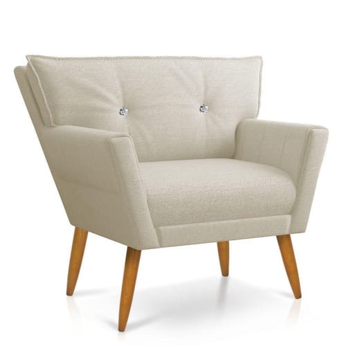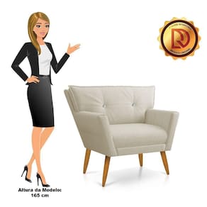 Poltrona Anitta Linho Grosso Bege A19 Com Strass Pés Palito Castanho - D'rossi