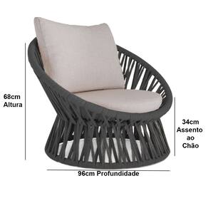 01 Poltrona Área Externa Monza Alumínio Pintura Corda Náutica.