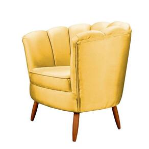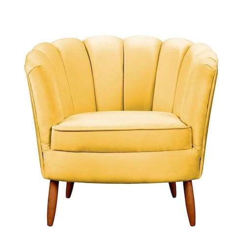 Poltrona Ariel Petala Decorativa Com Pés De Madeira Speciale Home Amarelo A poltrona Ariel foi fabricada para voce, que procura uma poltrona moderna, luxuosa e com um design unico, ela se destaca pela sofisticacao e a forma de como a costura e finalizada. O refinamento da peca torna-se sinonimo de bom gosto e elegancia se adaptando a qualquer ambiente, tornando-o charmoso e diferenciado, sendo peca de destaque na composicao de sua sala, quarto ou ate mesmo seu home office.