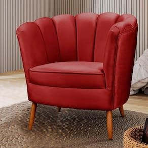 Poltrona Ariel Petala Decorativa Com Pés De Madeira Speciale Home Vermelho A poltrona Ariel foi fabricada para voce, que procura uma poltrona moderna, luxuosa e com um design unico, ela se destaca pela sofisticacao e a forma de como a costura e finalizada. O refinamento da peca torna-se sinonimo de bom gosto e elegancia se adaptando a qualquer ambiente, tornando-o charmoso e diferenciado, sendo peca de destaque na composicao de sua sala, quarto ou ate mesmo seu home office.