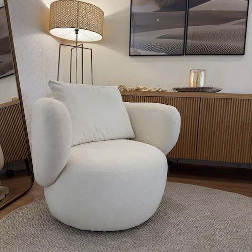 Fabricante: Celsil Estofados. Acompanha Almofadas extras: Não Acompanha Puff: Não Almofada do assento: Não Possui Almofada do encosto: Removível Altura do assento até o chão: 43 cm Altura do Encosto: 71 cm Ambiente Principal: Sala de Estar Cor: Natural Cor do Produto: Natural Design Assinado: Não Enchimento do Braço: Espuma D-28 Encosto para a Cabeça: Não Estampado: Não Extensível: Não Itens Inclusos: Poltrona e almofada solta do encosto Material do Braço: Estrutura em aço tubular, revestido de espuma D-28 e tecido. Modelo de Poltrona: Giratório Necessita Montagem: Não Origem do Produto: Nacional Peso: 26 kg Possui Percintas Elásticas: Sim Possui Pés: Não Recomendações de Uso, Manutenção e Limpeza: *Recomendações de Lavagem do Fabricante Não Lavar; -Não Alvejar; -Não secar em tambor; - Não Passar a ferro ou Vaporizar; - Limpeza com pano úmido Suporta Até (kg): 130 kg Tecido Predominante: Boucle Tipo de Assento: Fixo Tipo de Encosto: Fixo Tipo de Poltrona: Decorativa Marca: CELSIL ESTOFADOS